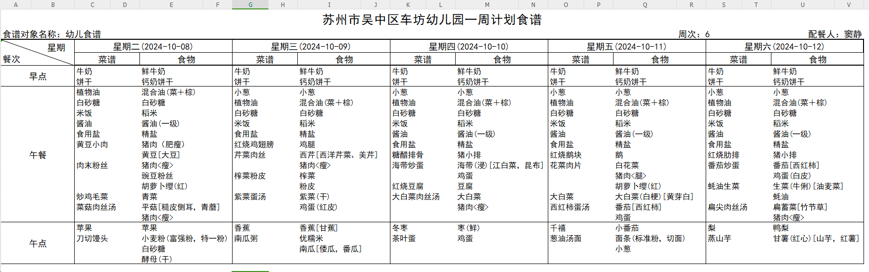 每周食谱