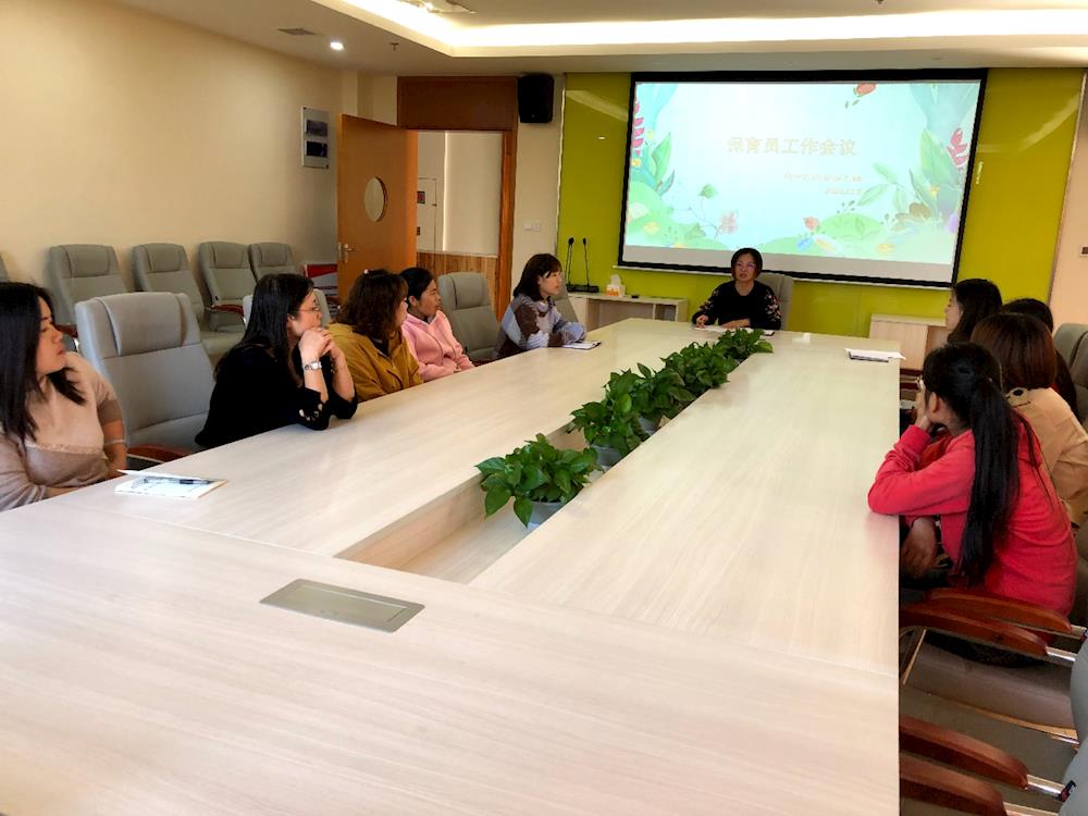 我园召开保育员工作例会 来源: 发布时间:2020-11-10 11:53:17 浏览次数: 次 【字体:小 大】 我园召开保育员工作例会 11月6日下午,我园召开保育员工作例会,保健老师和全体保育员参加了会议。会上,邱荷花园长首先小结了近阶段工作的内容,明确现在开展的活动是课程游戏化的第二步支架:改造我们的专业知识和能力。接下来重温了保育员工作职责,明确大家在一日活动中定位。最后部署下阶段的工作。 分享到: 【打印正文】