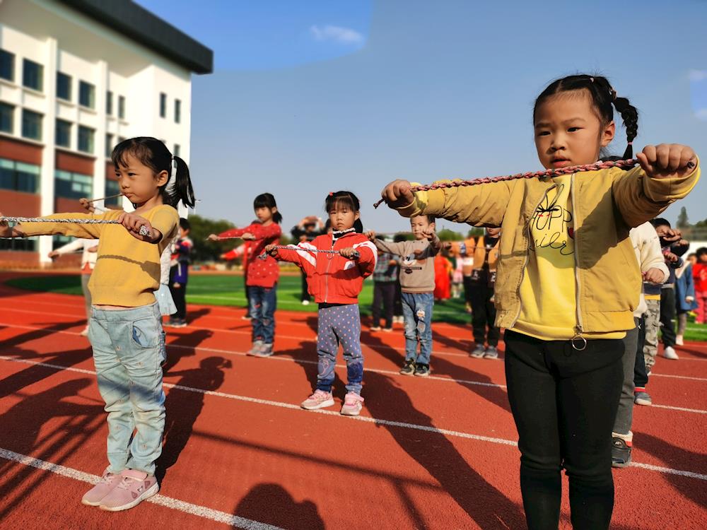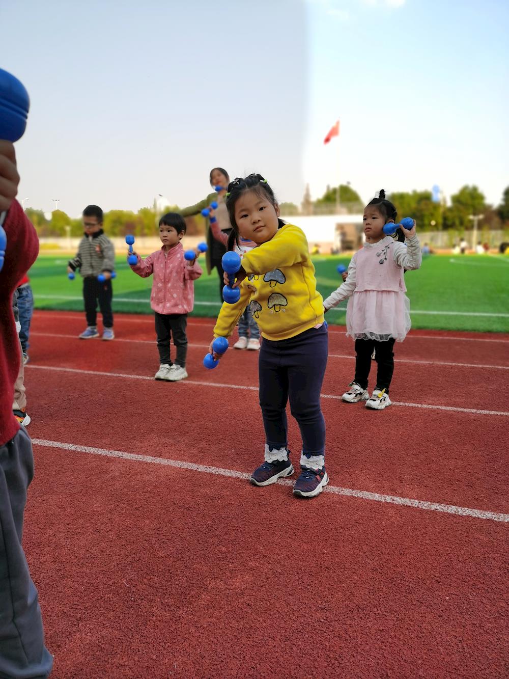 11月10日下午,阳光依旧暖,孩子们迈着轻快的步伐,脸上洋溢着灿烂的笑容,这里即将进行一场器械操评比。大班的哥哥姐姐展示的是绳操,还是自己编织的布绳呢。中班的孩子们舞动是塑料圈,一会左,一会右,上上下下,非常整齐。小班的宝贝们做的是哑铃操,还伴着沙沙的响声呢。