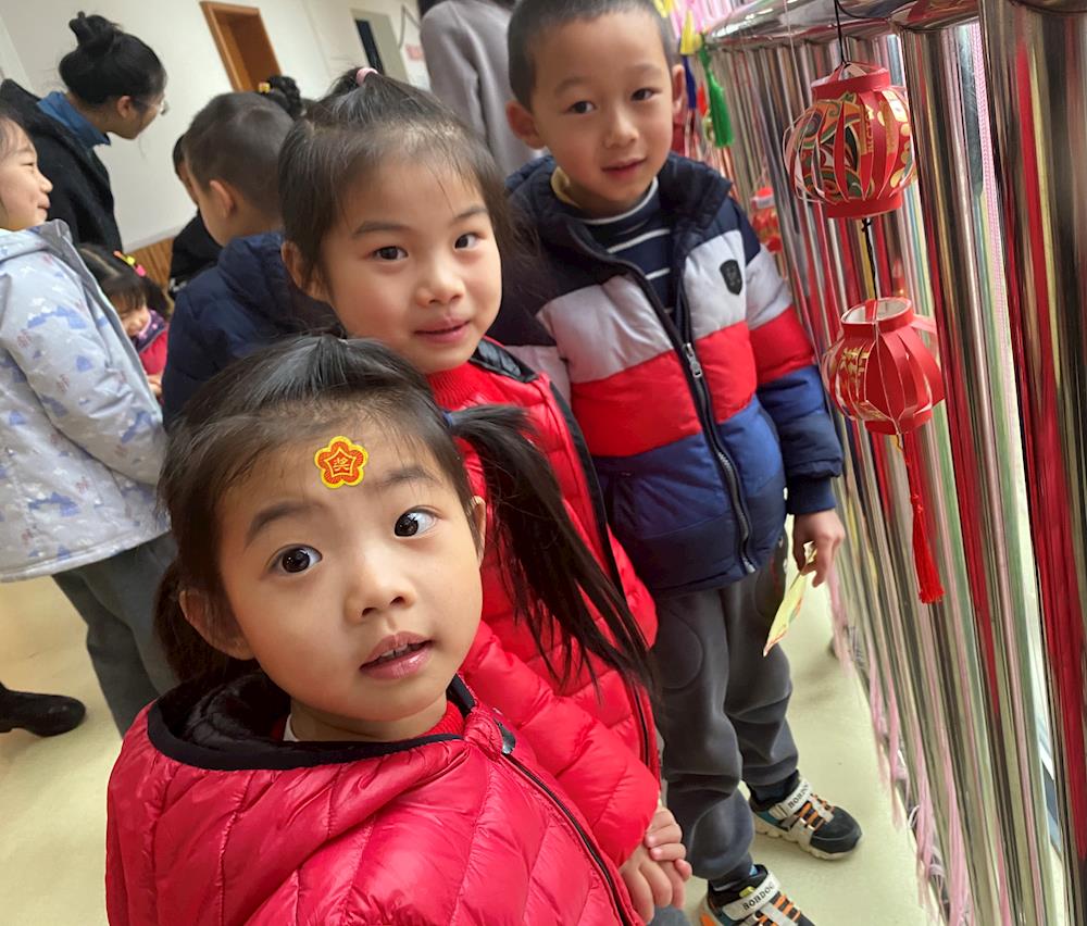 闹元宵,赏花灯,大班孩子们拉着中班和小班弟弟妹妹的手一起开启了赏花灯之旅,大手拉着小手,满满的都是爱。“我们一起走,小心不要撞到了。”“我们一起去看花灯猜灯谜吧。”在中大班哥哥姐姐的呵护下,小班的宝贝们不再那么害羞。赏花灯、猜灯谜,元宵节的气氛在幼儿园里飘散开来。