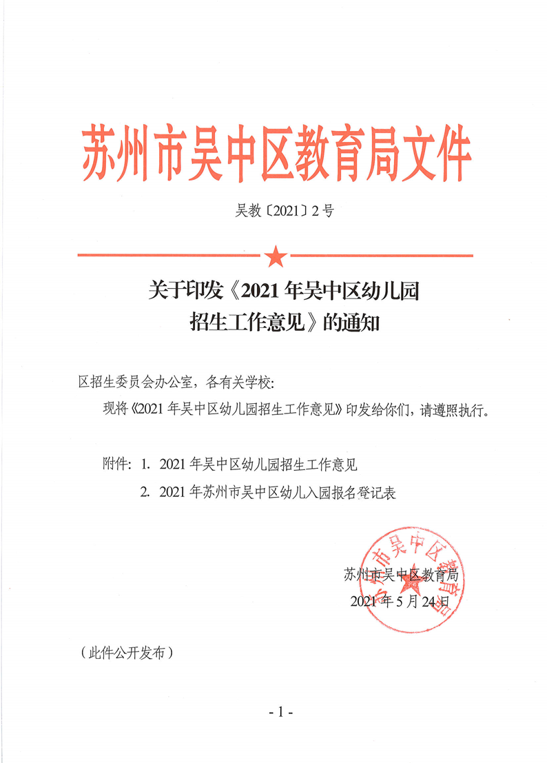 吴教〔2021〕2号关于印发《2021年吴中区幼儿园招生工作意见》的通知